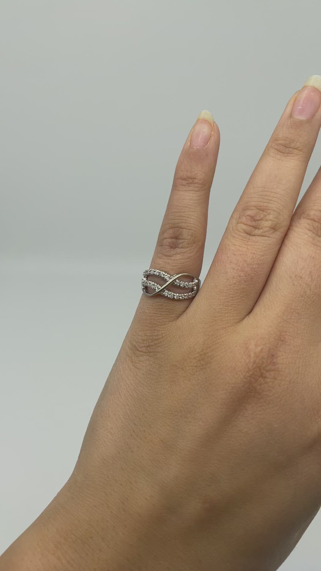 Double Row Diamond Cross Over Ring | 0.24ctw, SZ 6.5 |