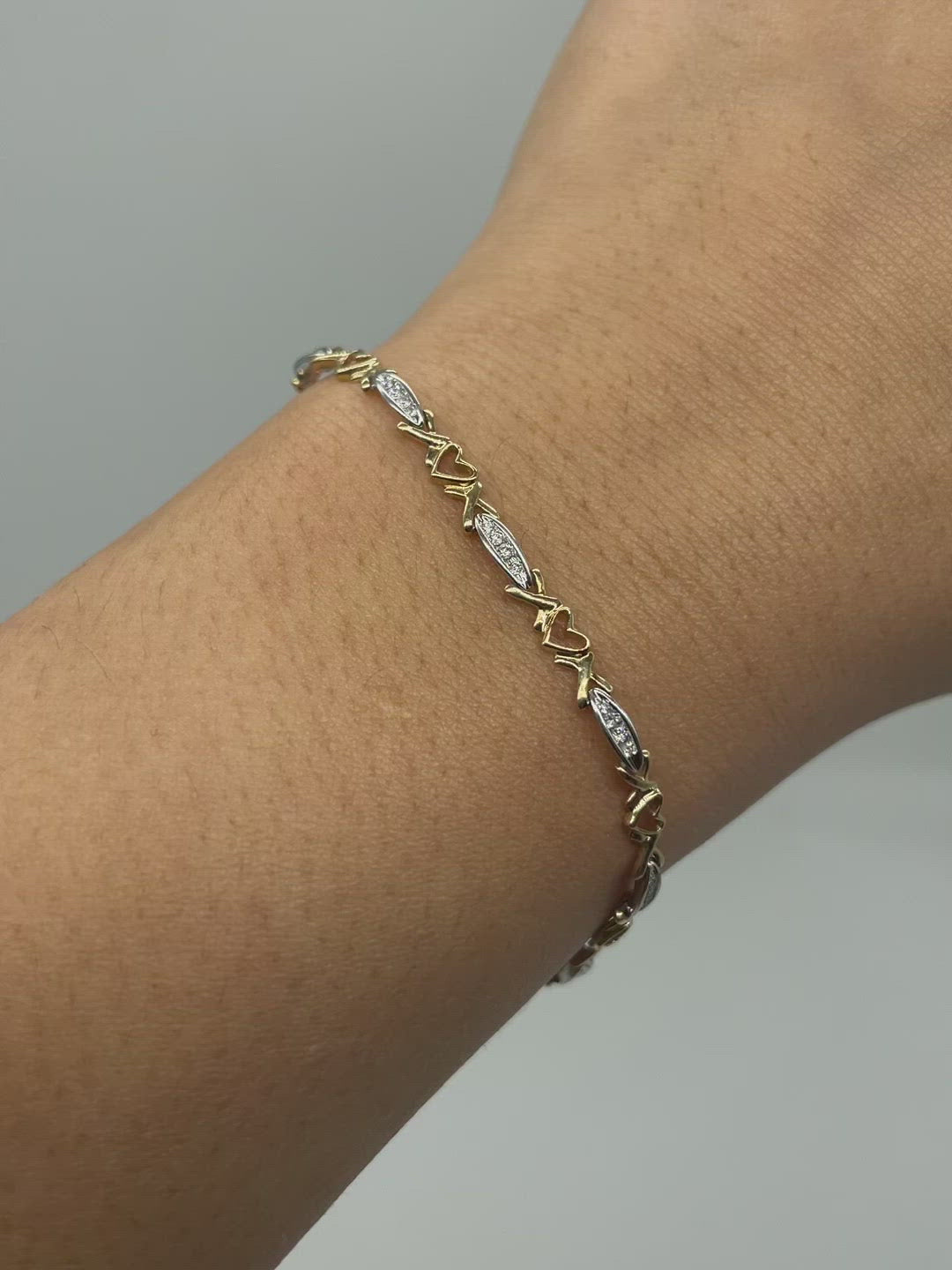 14k Two Tone Gold Diamond Heart Bracelet | 0.25ctw | 7.5" |