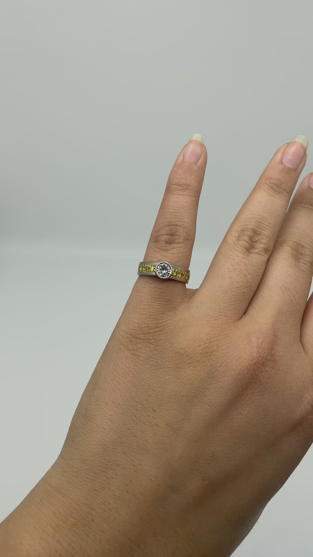 Bezel Set Diamond & Yellow Diamond Accented Engagement Ring | 0.85ctw | SZ 6.5 |