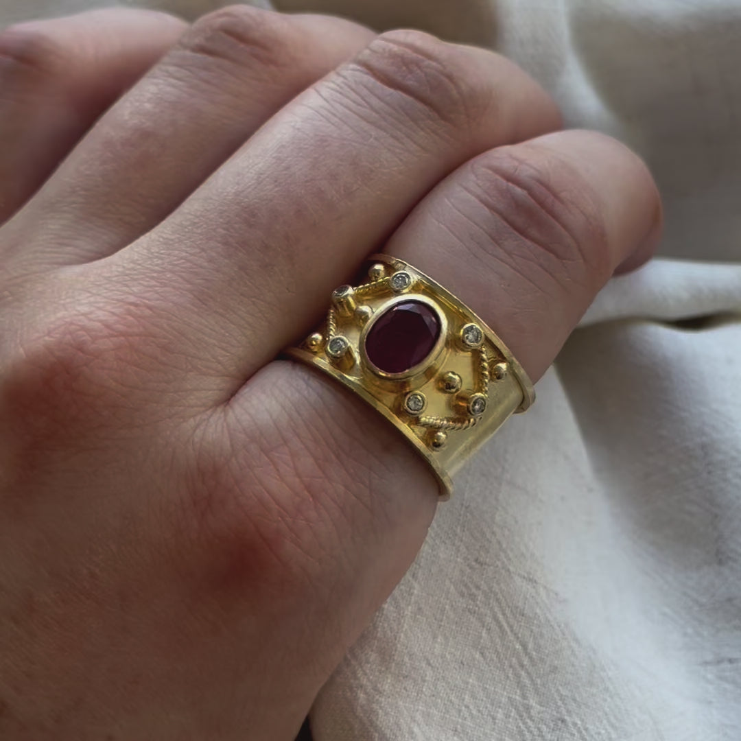 Bezel Set Oval Ruby & Diamond Cocktail Band