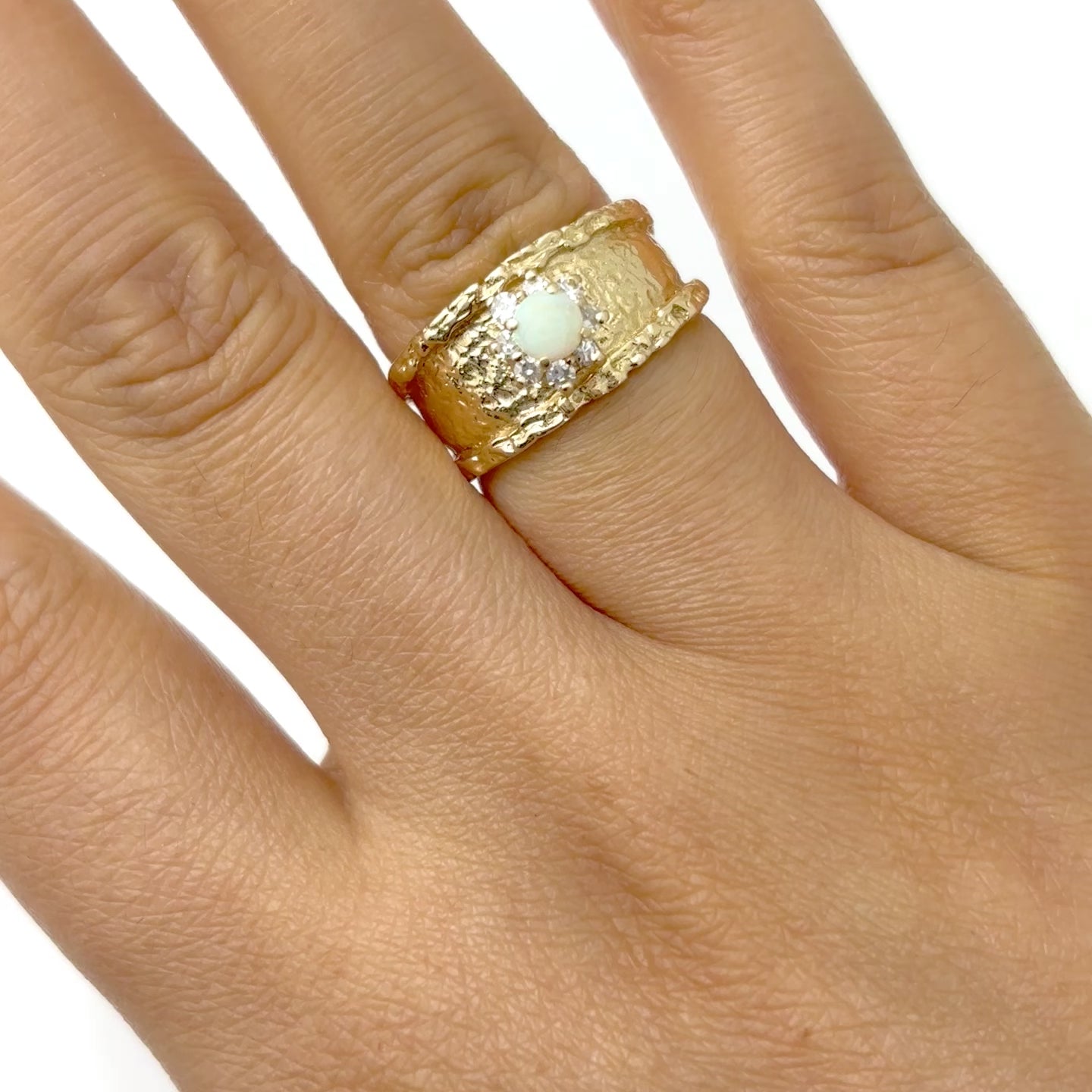 14k Yellow Gold Opal Cabochon Diamond Ring | 0.16 ctw, 0.18ct | SZ 6