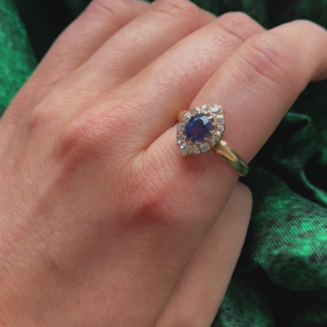 Victorian Colour Changing Sapphire & Diamond Navette Ring