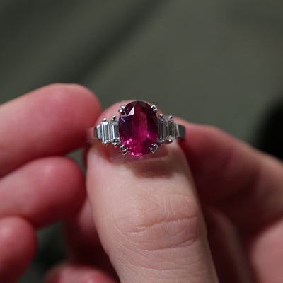 3.15ct GRS Unheated Pinkish Red Ruby & Diamond Basket Set Ring | 3.15ct | 0.40ctw | SZ 6.25