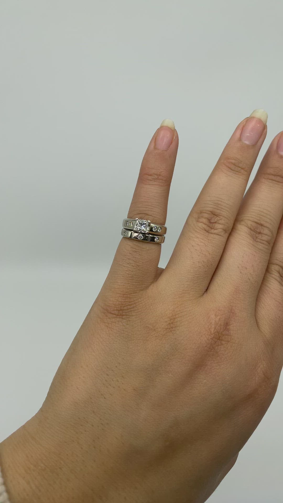GIA Princess Cut Engagement Ring & Flush Set Wedding Band Set | 0.97ctw VS2 F | SZ 5