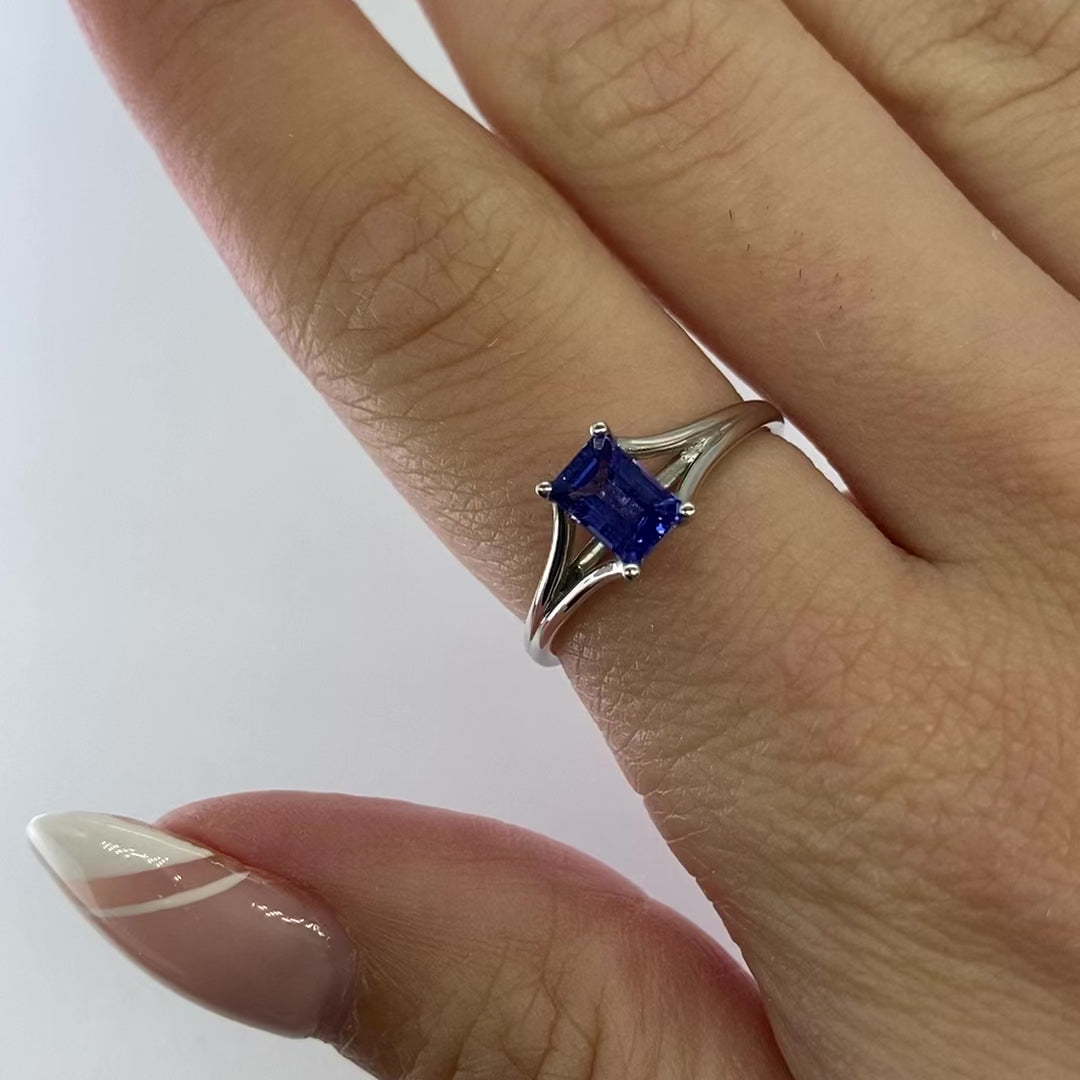 '100 Ways' Split Shank Emerald Cut Tanzanite Ring