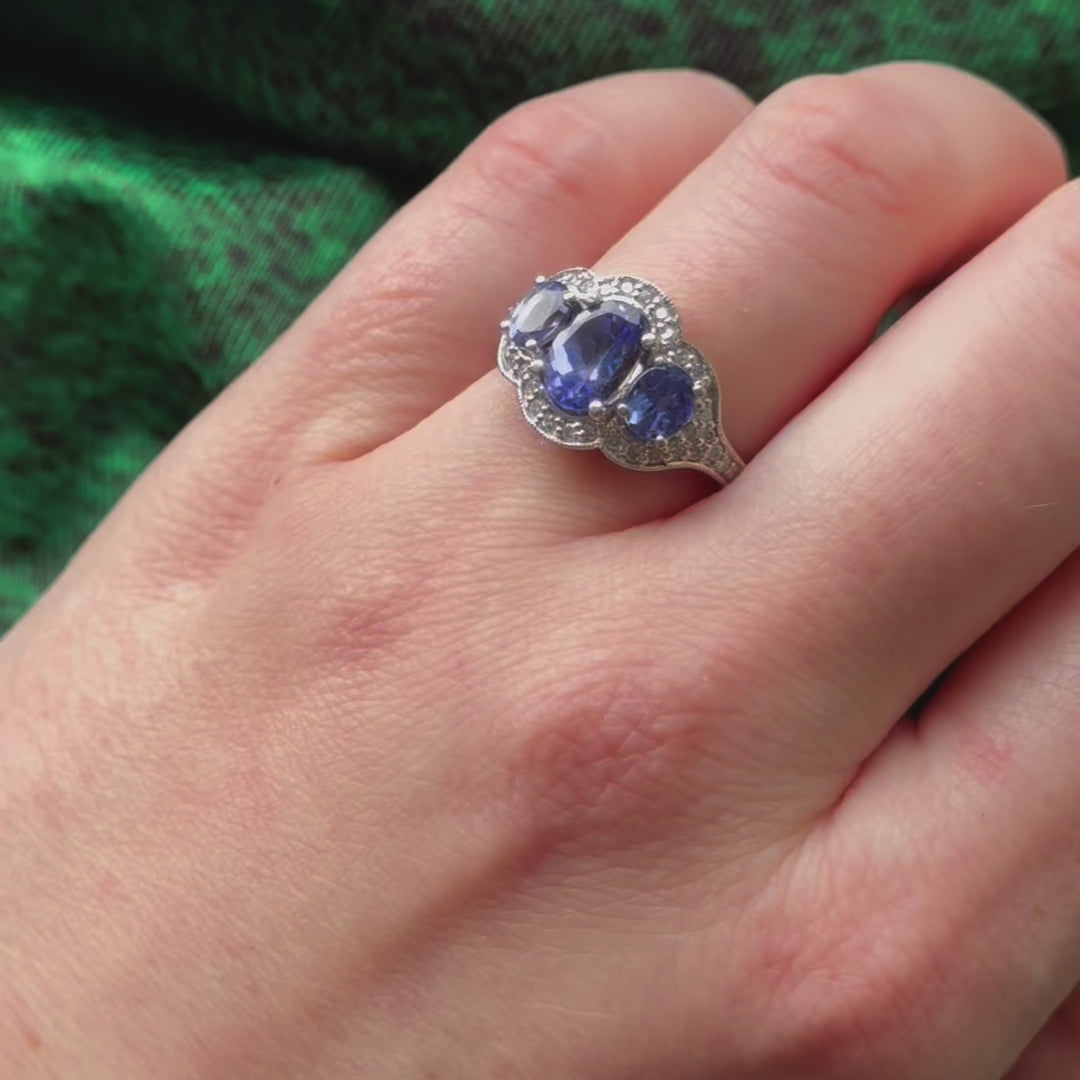 Three Stone Tanzanite & Diamond Ring | 1.50ctw, 0.19ctw | SZ 6 |