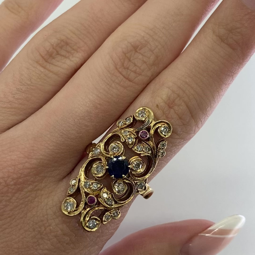 1930s Multi Gem Cocktail Ring | 0.45ctw | SZ 9 |