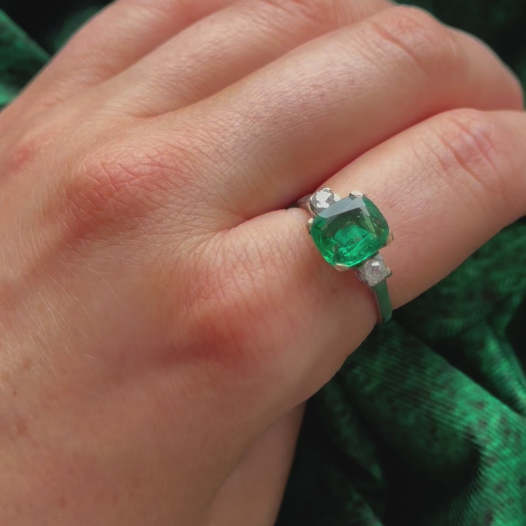 | Gemstones | Cushion Cut Emerald, Old European Cut Diamonds |
