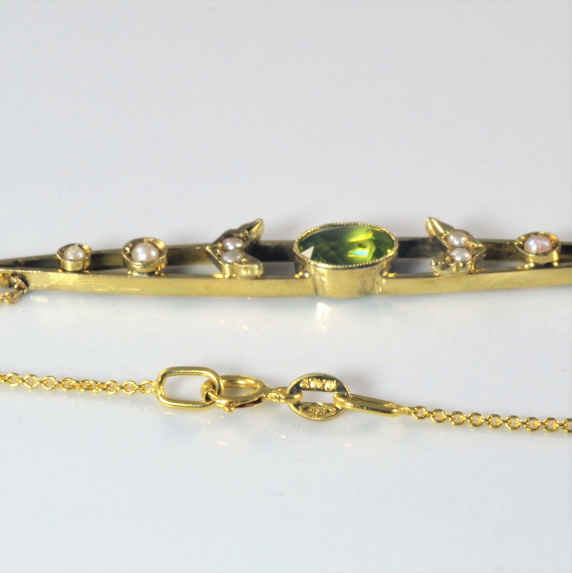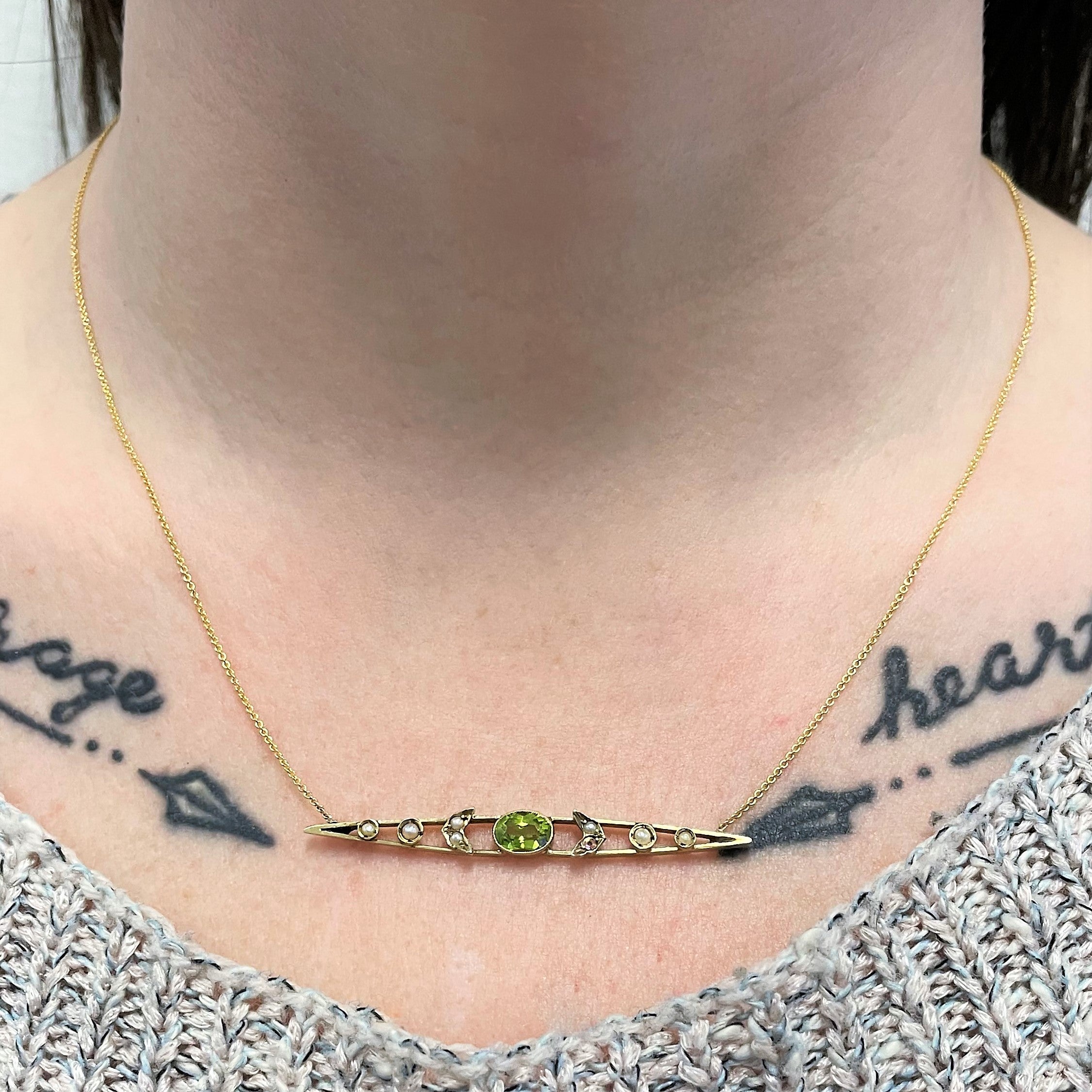 'Bespoke' Edwardian Peridot & Pearl Bar Pendant Necklace